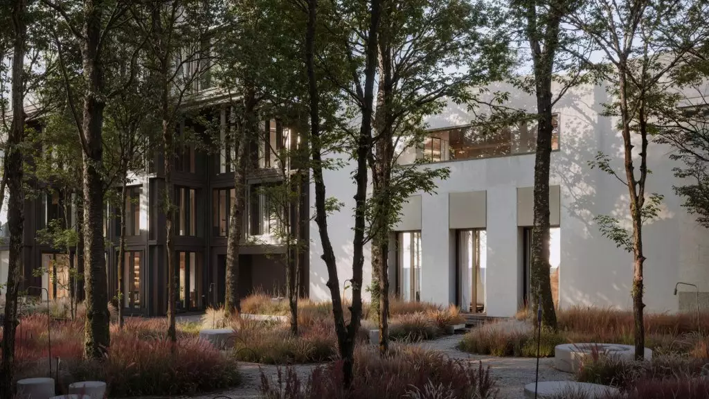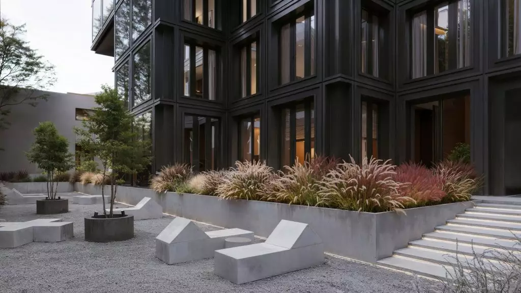 На закрытой придомовой территории застройщик планирует устроить камерный сад для отдыха резидентов клубного дома. Для их комфорта в ЖК Форум спроектирована лаунж-зона площадью около 425 м², где новоселам будут доступны: