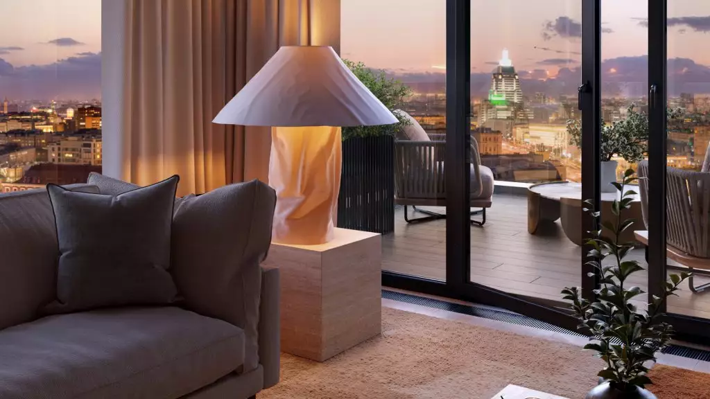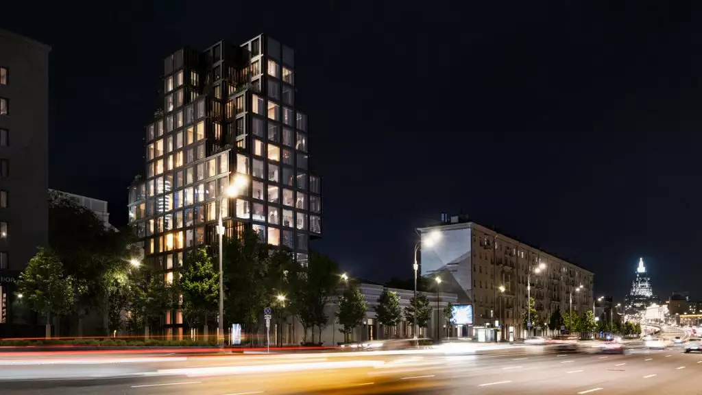 В стенах бывшего электротеатра и на первом этаже нового здания резидентам клубного дома будут доступны дизайнерское лобби с интерьерами от российского дизайн-бюро Studio APAA с круглосуточной консьерж-службой и обширной лаунж-зоной. Усеченная нижняя часть новостройки позволит разбить рядом с ней камерный внутренний двор. Центральные уровни займут типовые квартиры, а на самом верху разместятся двухуровневые пентхаусы. В уступах конструкции обустроят открытые видовые террасы. На подземных этажах спроектирован трехуровневый паркинг на 77 машиномест с зарядными станциями для электромобилей.