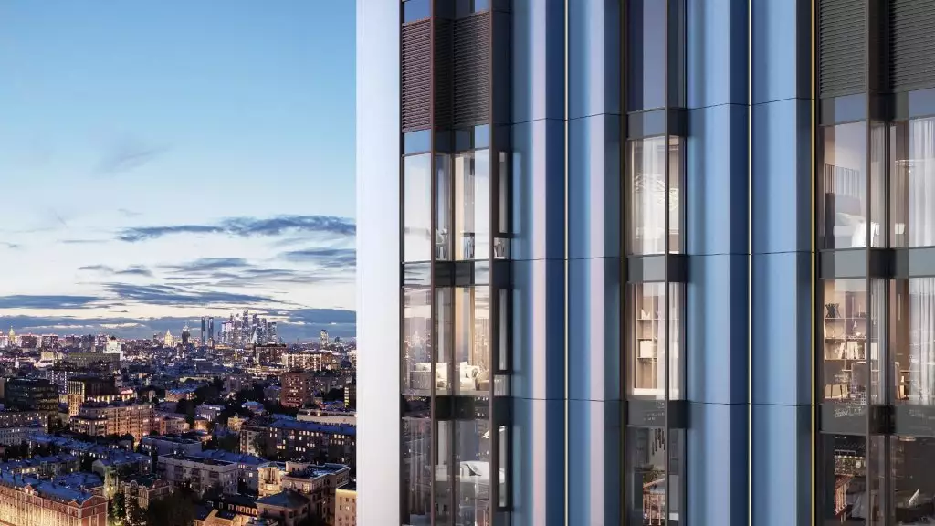 Архитектурный проект разработан известным столичным бюро KAMEN. Согласно замыслу зодчих, жилой комплекс выполнен в современном урбанистическом стиле с элементами хай-тека. Это подчеркивается четкими геометрическими линиями, лаконичными формами и обширным остеклением. В ансамбле участвуют три башни, объединенные стилобатом. Самый высокий корпус достигает в высоту 206 метров. Фасады зданий сочетают монолитные конструкции с панорамными окнами, создавая эффект легкости и воздушности, а также обеспечивая максимум естественного света в помещениях. Контраст глухих и стеклянных поверхностей добавляет динамики архитектурному облику, а ритмичное чередование балконов и террас придает фасадам выразительность. В оформлении преобладают нейтральные и холодные тона — оттенки серого, белого и металлик, что подчеркивает современный и технологичный облик комплекса. Плоские кровли с парапетами завершают строгий, но элегантный образ новостройки.