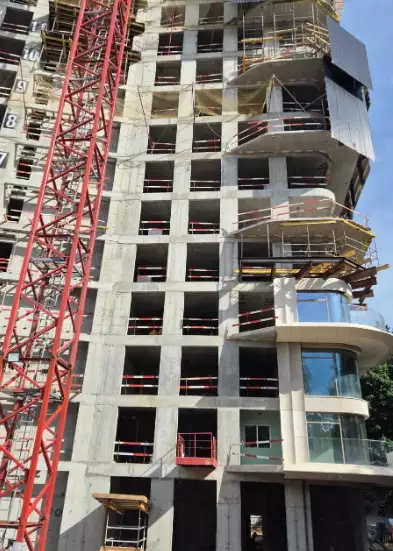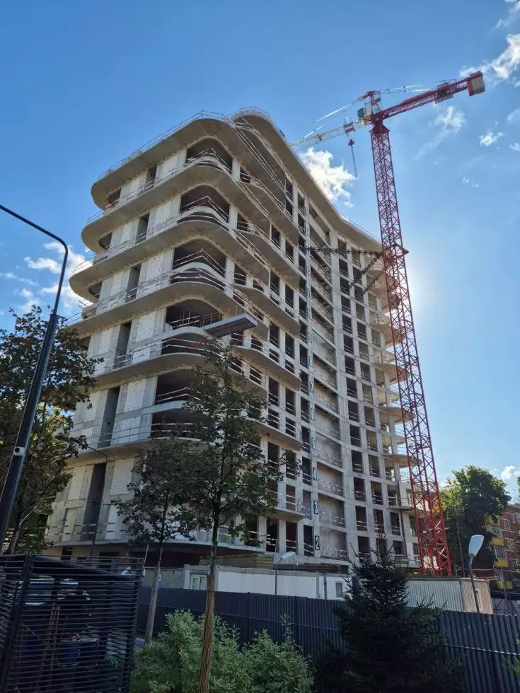 Дом возводится по монолитно-кирпичной технологии с панорамным остеклением окон. Для отделки фасадов используют натуральный камень благородных оттенков. Здание оборудуют современной инженерией. Безопасность жителей обеспечат системы видеонаблюдения 24/7 и контроля доступа. На этажи и в паркинг резидентов будут доставлять скоростные бесшумные лифты.