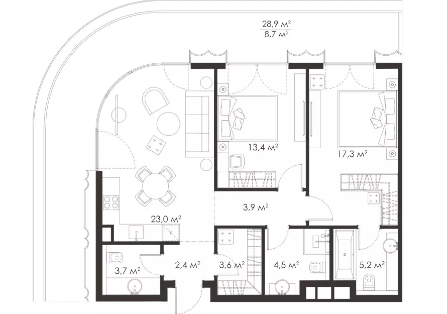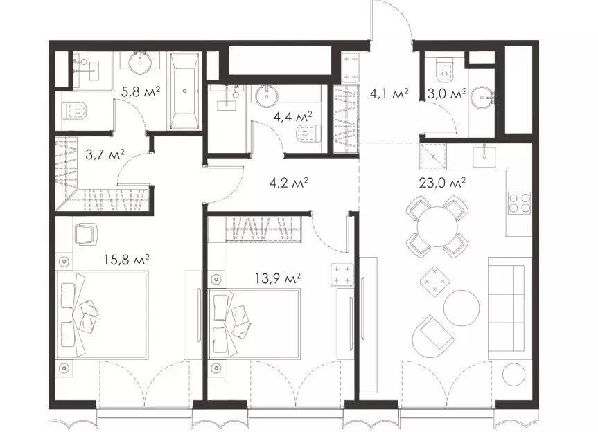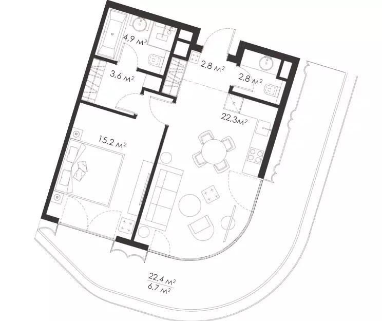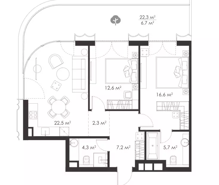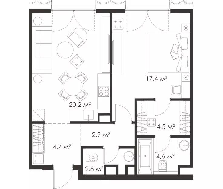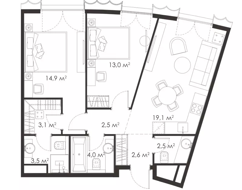 Покупателям жилья предлагаются уникальные планировки площадью от 51 до 190 м², причем количество крупногабаритных квартир достигает 30% от общего числа. Можно выбрать варианты с одной, двумя, тремя или четырьмя комнатами, студии в проекте не представлены. Есть лоты с террасами или персональными патио, а также пентхаусы. Высота потолков на типовом этаже 3,23 м, в пентхаусах и на первых уровнях 4,6 м. Через панорамные окна откроются прекрасные виды на МГУ, Воробьевы горы и ММДЦ "Москва-Сити". Все жилье застройщик передает без отделки.