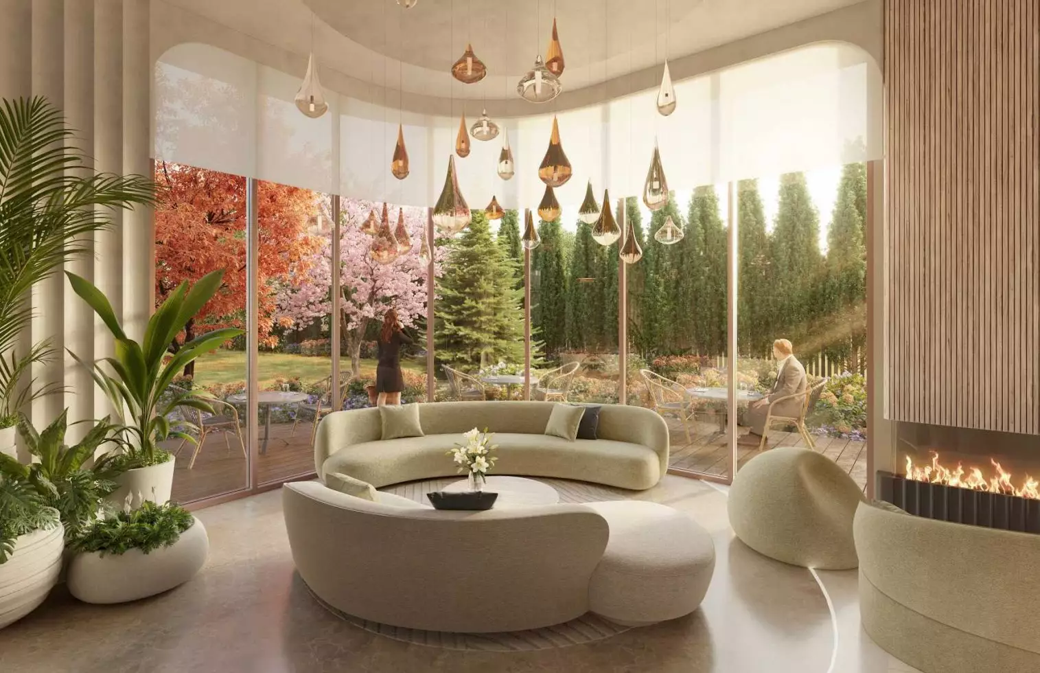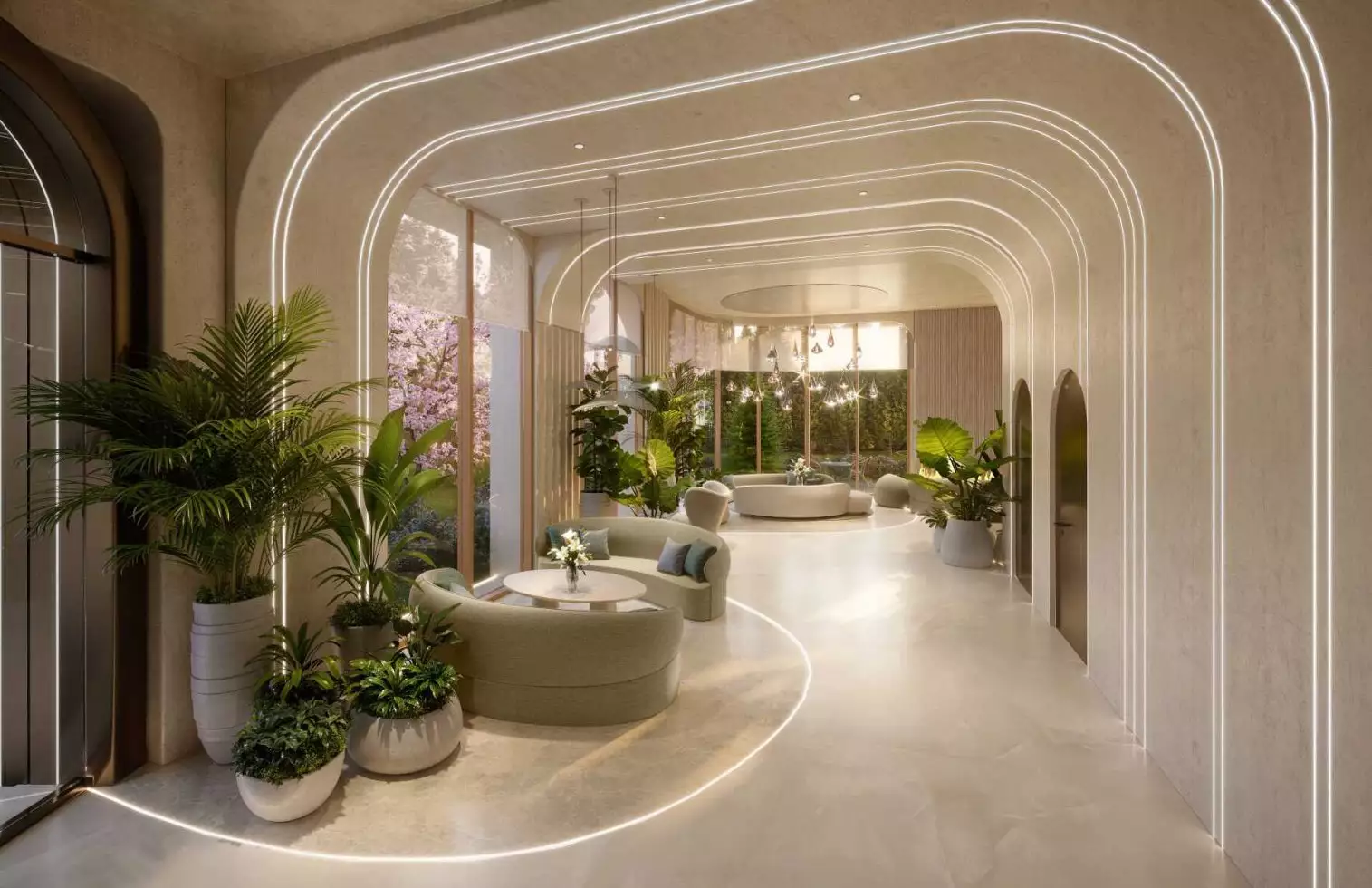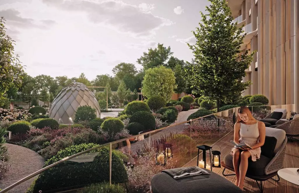 При создании общественных пространств зодчие вдохновлялись японской культурой shinrin-yoku — искусством сознательной прогулки по лесу, — добиваясь стирания границ между домом и природой. Первый этаж займут просторные входные группы и лобби с зонами отдыха, интерьерами в японском стиле, зимним садом с экзотическими растениями. В проекте не предусмотрено площадей под коммерческие заведения: так застройщик подчеркивает клубный характер жилого комплекса. Подземный уровень займет паркинг на 110 машино-мест.