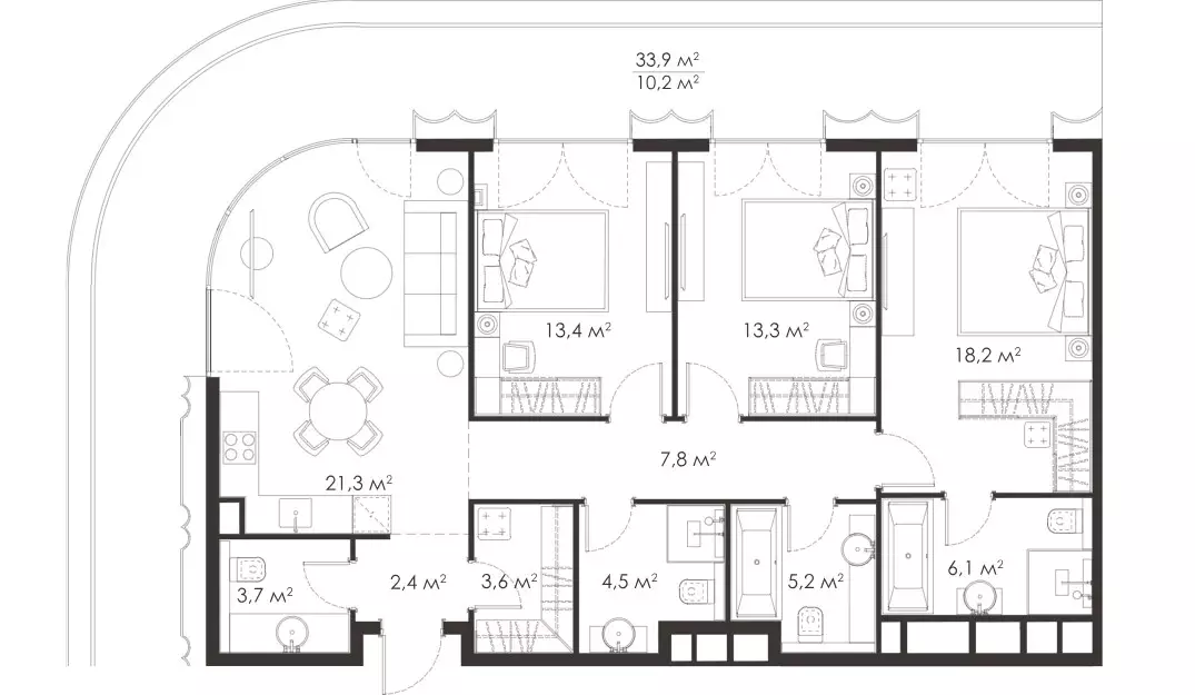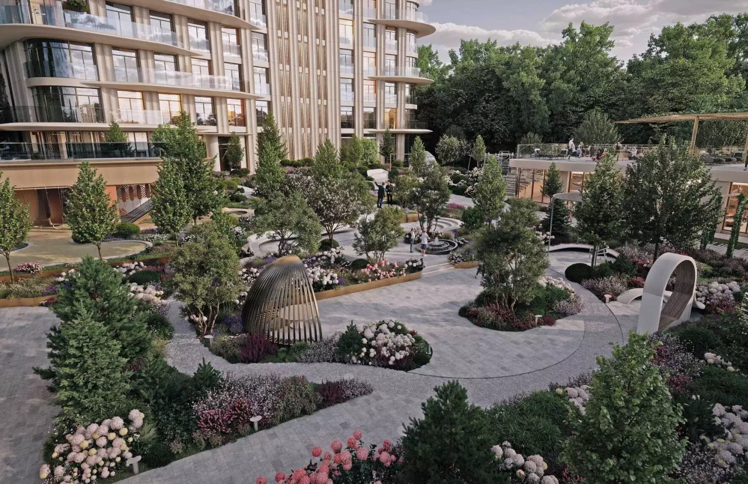 Жилой комплекс уникален как снаружи, так и изнутри. Гигантское патио, много зелени и пространства, виды особенно с верхних этажей будут умопомрачительными. Выбираем квартиру в ЖК King & Sons с видом на закат, это будто бы свой дом, но в ЖК. Наконец среди новостроек столицы появился достойный проект, куда хочется ворваться прямо сейчас.