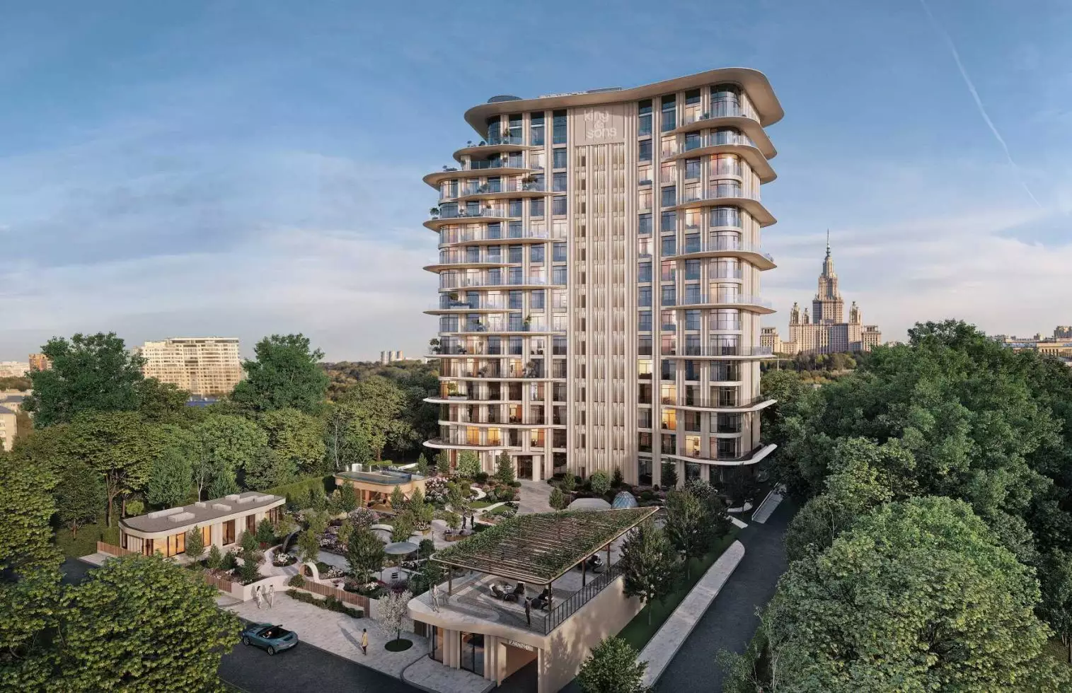 ЖК King & Sons (Кинг энд Санс) представляет собой 15-этажный дом с собственной инфраструктурой, рассчитанный на 117 элитных квартир. Общая площадь жилой недвижимости составит 9,3 тыс. м². Строительство должно завершиться в I квартале 2027 года.
