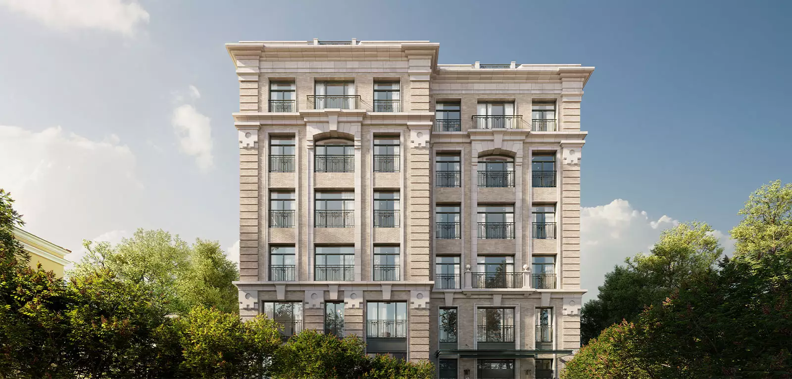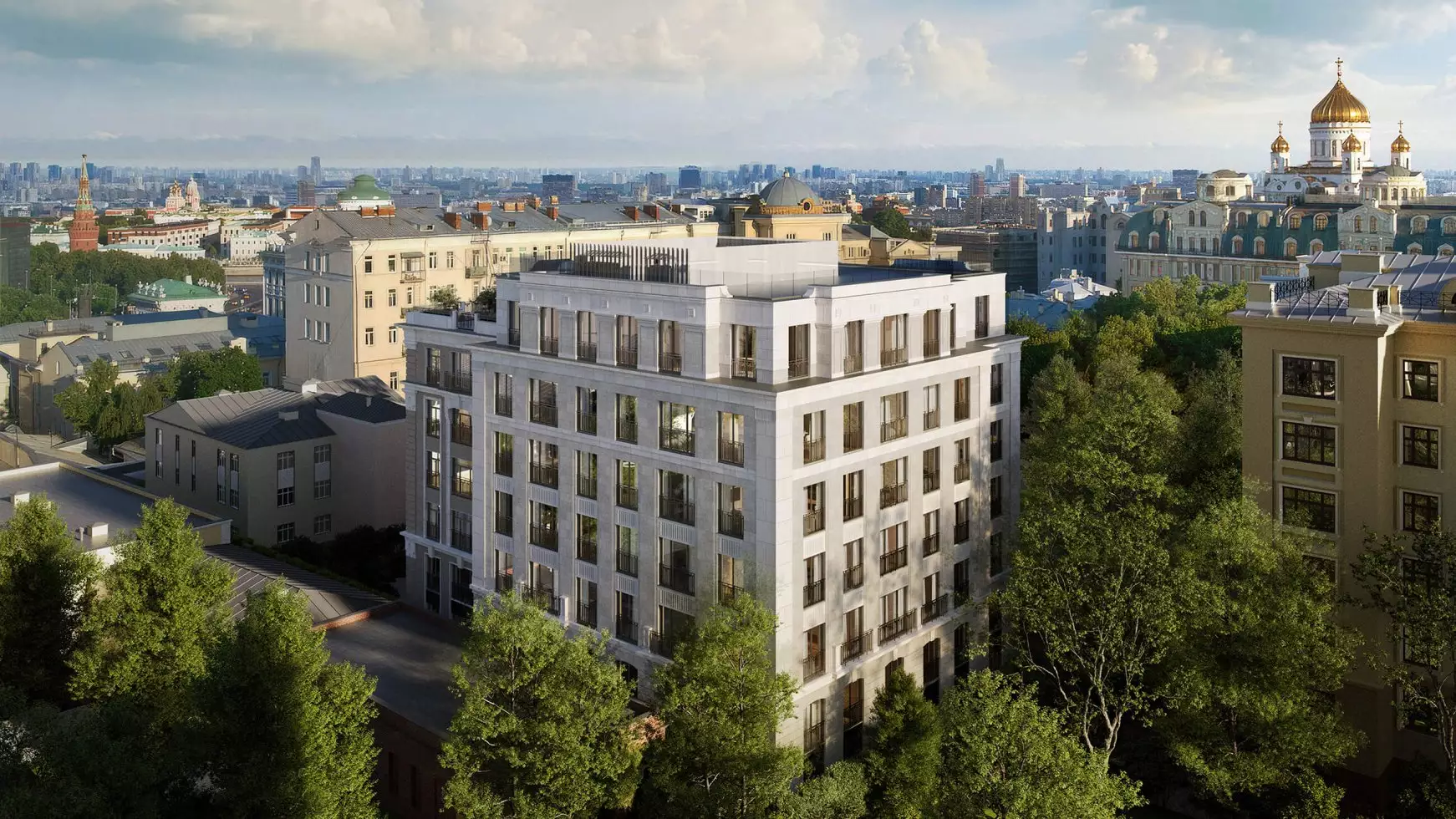 В проекте отсутствуют студии. Минимальная площадь однокомнатного лота составляет 97 м², а самый просторный трехкомнатный достигает 615 м². Окна квартир увеличены. Высота потолков варьируется от 3,2 до 3,75 м. Есть лоты с мастер-спальнями, кухнями-гостиными, кабинетами и гардеробными. Балконы – с ограждением во французском стиле. Из окон откроются виды на центр столицы. Верхний этаж займут два пентхауса с подогреваемыми террасами и впечатляющими видами на Кремль и Храм Христа Спасителя. Два этих лота можно объединить в один. Вся недвижимость передается покупателям с черновой отделкой.