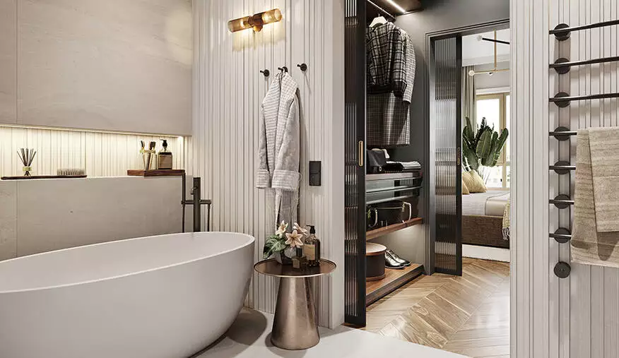 Покупателям жилья предлагаются десятки вариантов классических и европланировок с 1-3 комнатами (включая студии), площадью от 16 до 128 м², с высотой потолков на типовом этаже 2,7 м. Можно приобрести лоты с мастер-спальнями, кухнями-гостиными, окнами в пол, французскими балконами, гардеробными помещениями, отдельной ванной комнатой, террасами. Также представлены пентхаусы и двухуровневые квартиры. Из окон будут открываться прекрасные виды на центр столицы и окружающие парки. Все жилье застройщик передает с предчистовой отделкой white box.