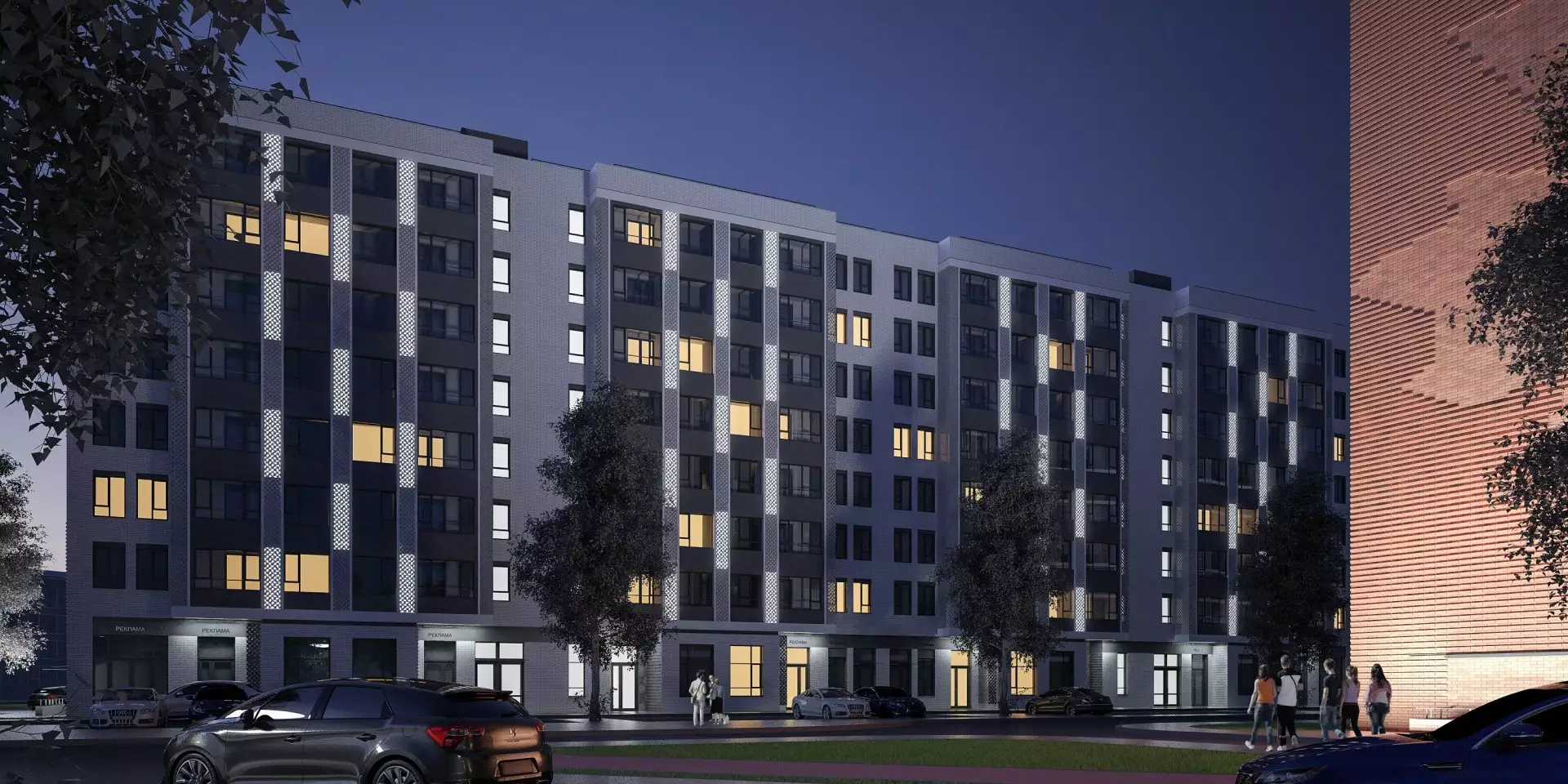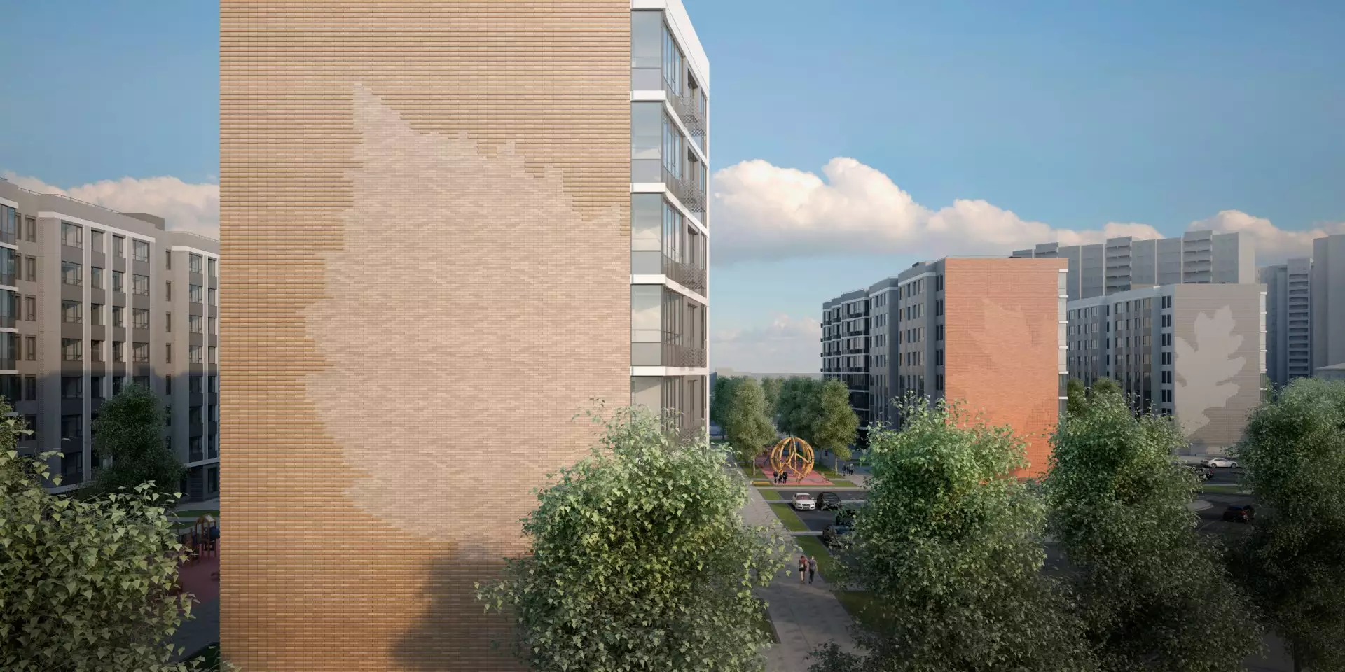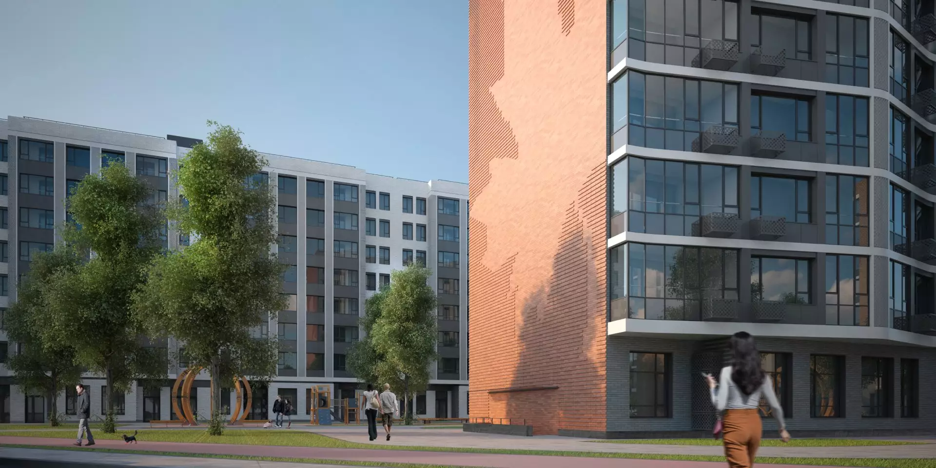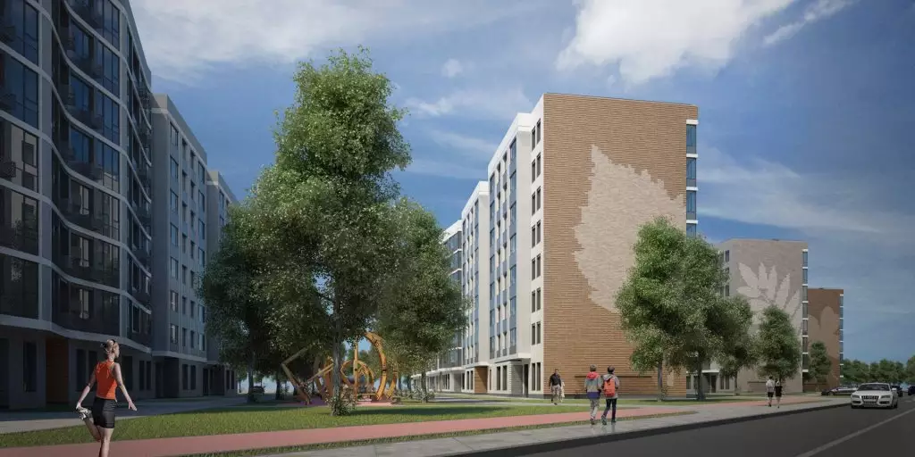 Придомовая территория будет благоустроена и озеленена. Дворы закроют для проезда машин. Рядом с домами появятся детские игровые и спортивные площадки, зоны отдыха, прогулочные бульвары, велодорожки и велопарковки, места для выгула собак. В состав встроенной инфраструктуры квартала войдут: