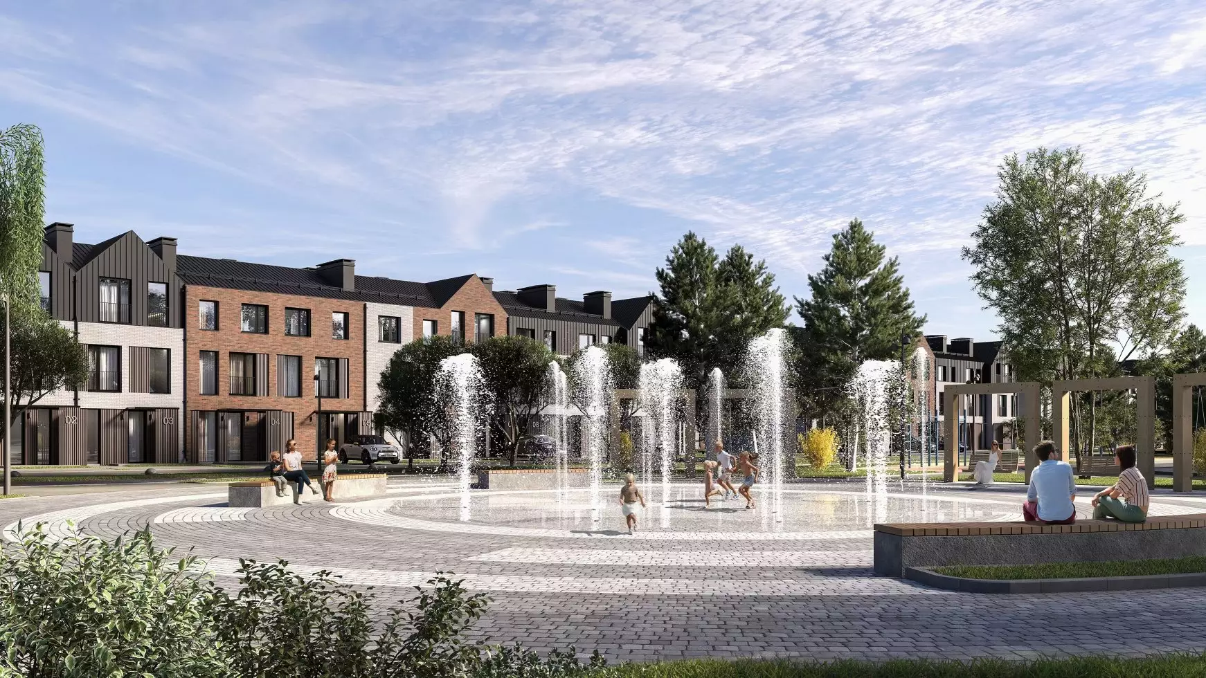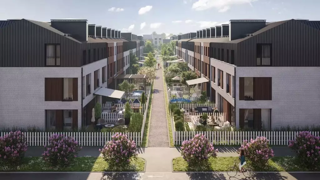 КвартирыВ проекте будут предусмотрены таунхаусы с фасадами в скандинавском стиле с увеличенной площадью окон. Перед каждым домом будет предусмотрено парковочное место и участок с газоном. |