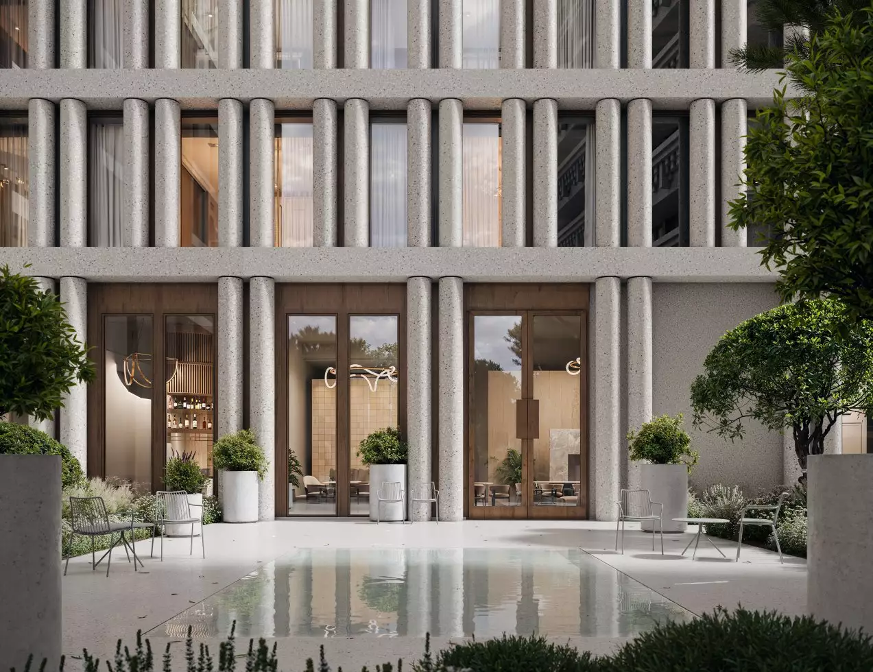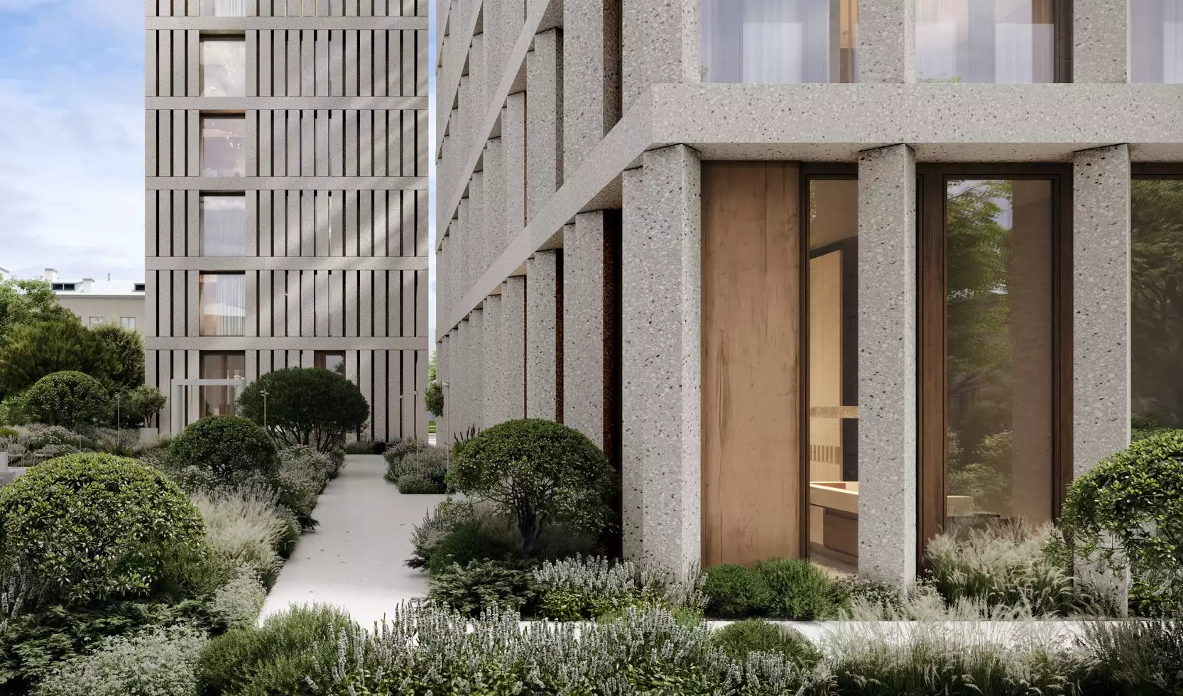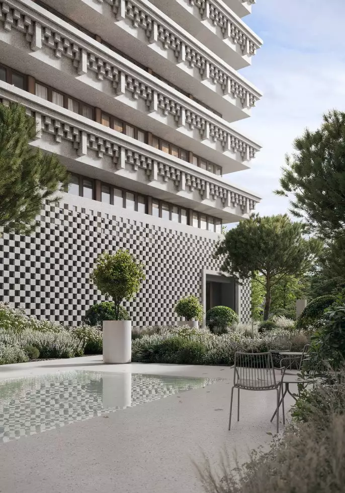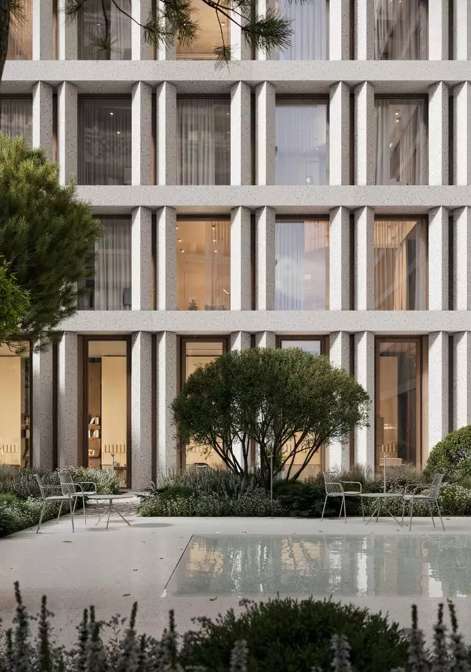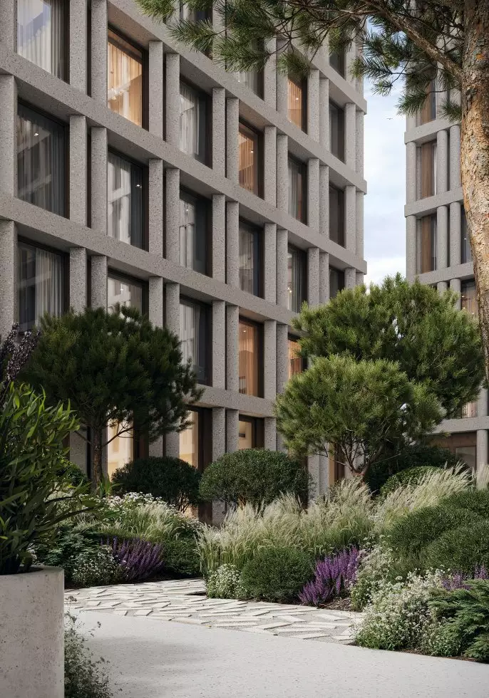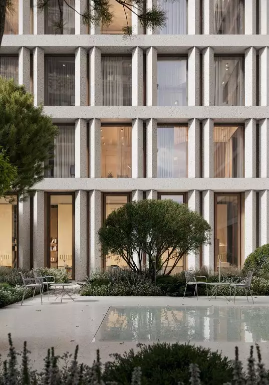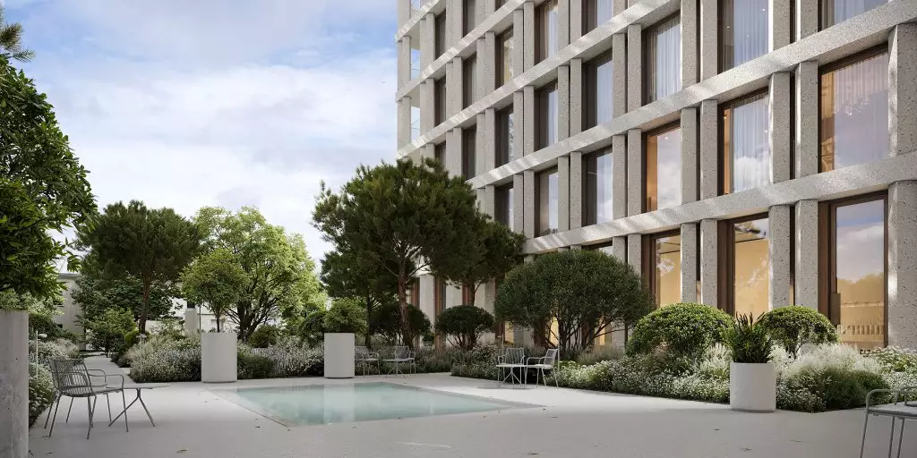Придомовая территория будет находиться под охраной и полностью закрыта для проезда машин и прохода посторонних. Для оформления дворов разработан ландшафтный дизайн-проект в пейзажном стиле, создающем атмосферу уюта и спокойствия. Каменные аллеи украсит сад с плодовыми деревьями и цветниками. Для отдыха там установят удобные скамейки и кресла. Пространство дворов станет безопасным для прогулок с детьми и домашних питомцев. В состав встроенной инфраструктуры квартала войдут: