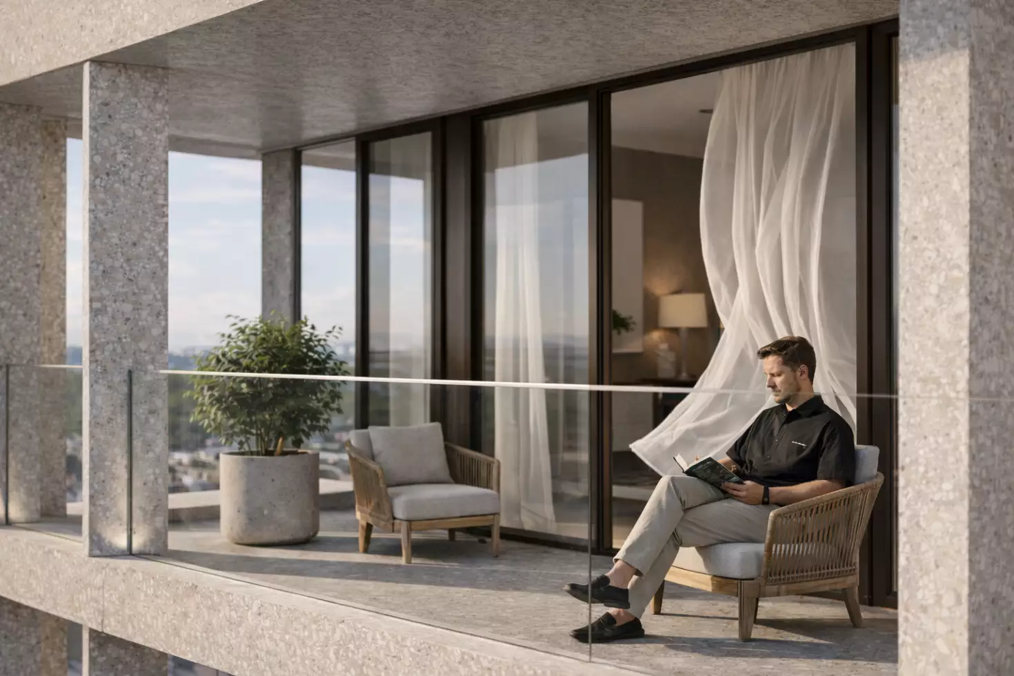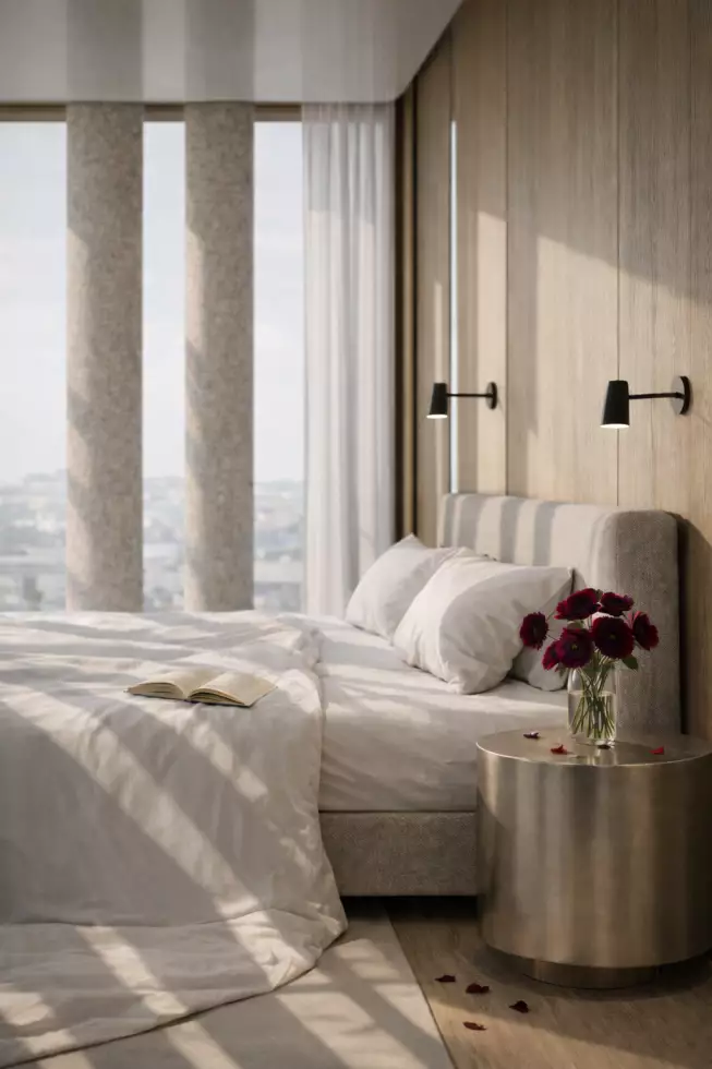Покупателям предложены эксклюзивные планировки площадью от 80 до 250 м². Это лоты с просторными кухнями-гостиными, мастер-спальнями и тремя санузлами, двухуровневые квартиры с кабинетами и гардеробными, варианты с террасами и сервисными зонами. Также обещают пентхаусы с панорамным остеклением и возможностью установки дровяных каминов. Некоторые квартиры (корпуса А и С) будут передаваться застройщиком с готовой отделкой в минималистичном стиле, в светлых оттенках. В двух других корпусах жилье предложат без отделки.