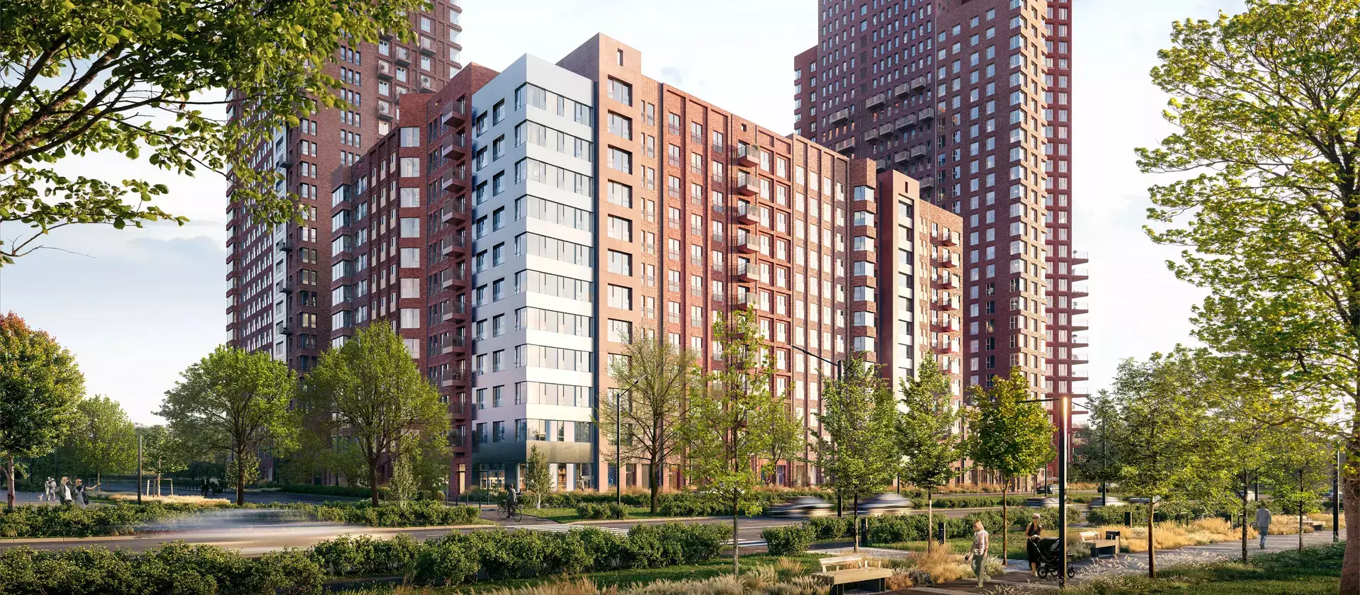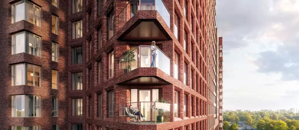 Проект относится к "Серии плюс" ПИК, в которую входят жилые кварталы с повышенным уровнем комфорта и уникальной архитектурой. Визуальный образ новостройки создан мастерами российского бюро Saga. Это стильная, выразительная и функциональная архитектура в эклектическом ключе, вдохновленная разными стилями и образцами. Зодчие предложили свыше восьмидесяти разнообразных типов кирпичных фасадов с различными цветовыми решениями в рамках терракотовой палитры. Их разнообразят фигурные эркеры, балконы различных типов, панорамные и угловые окна, декоративные серебристые вставки. Доминантной квартала и всего района станет жилая башня необычной треугольной формы.