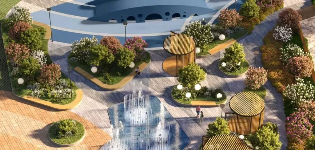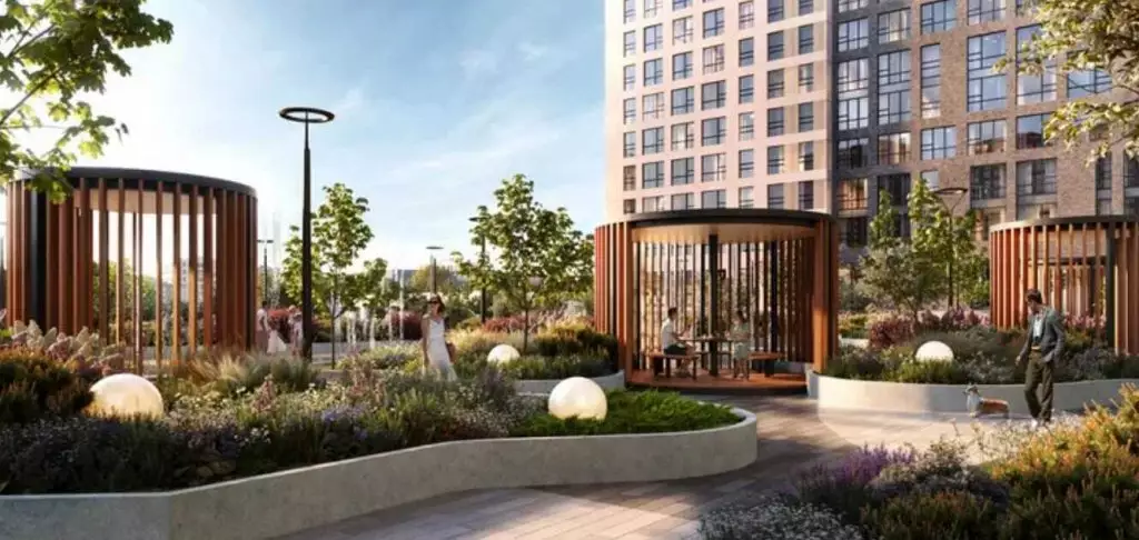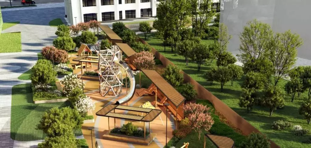 Внутренняя территория комплекса будет закрыта и охраняема, проезд автомобилей ограничен пешеходной зоной, резиденты смогут пользоваться подземным паркингом или гостевой стоянкой за дворовыми пределами. Внутри двора создадут многофункциональное пространство для отдыха и активного времяпрепровождения. Проектом предусмотрены цветущие сады с зонами для релаксации, детские игровые площадки современного формата плэйхаб, спортивные зоны для воркаута и йоги, а также прогулочные и велодорожки. В состав встроенной инфраструктуры квартала войдут: