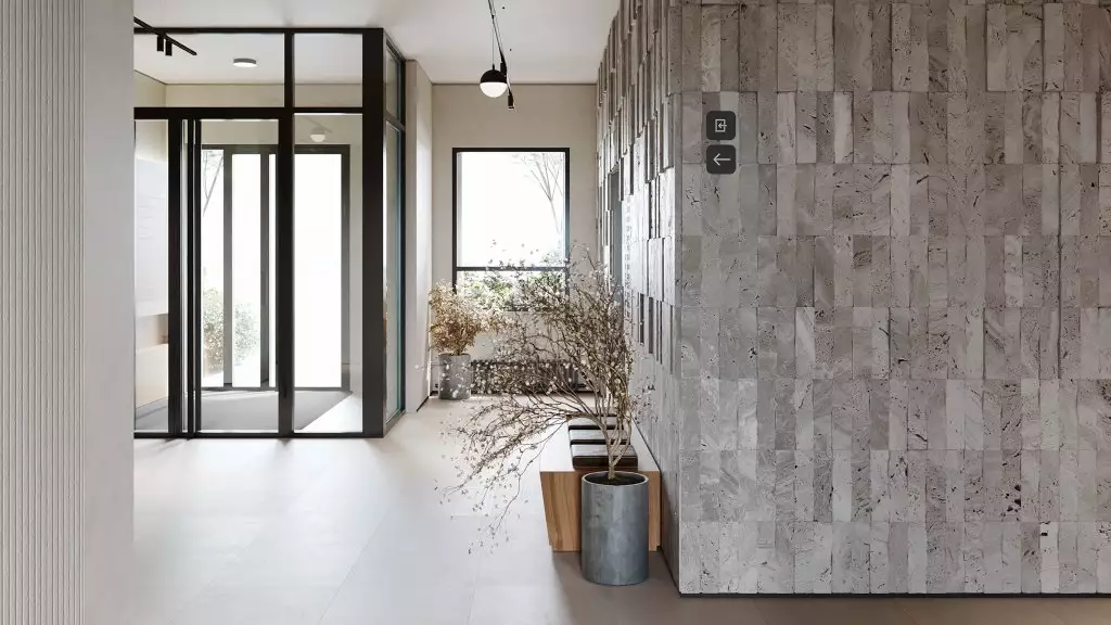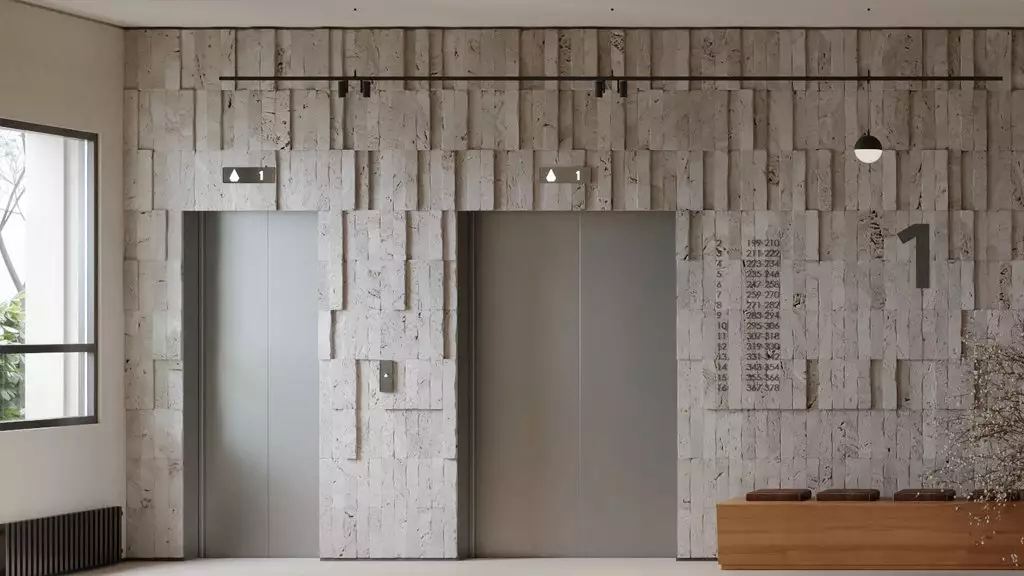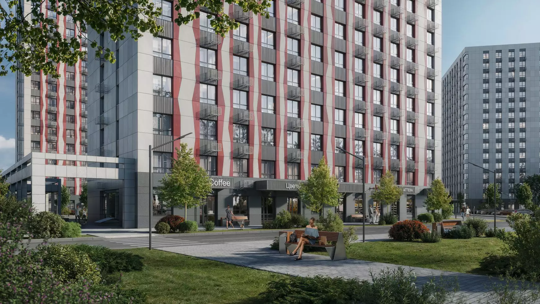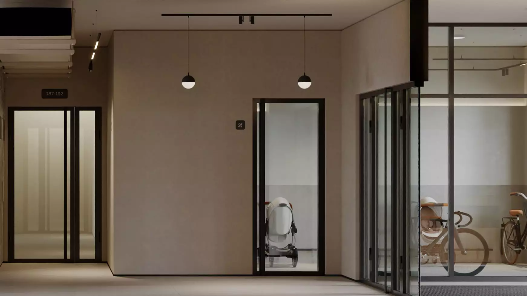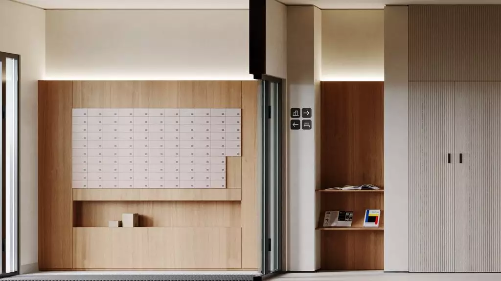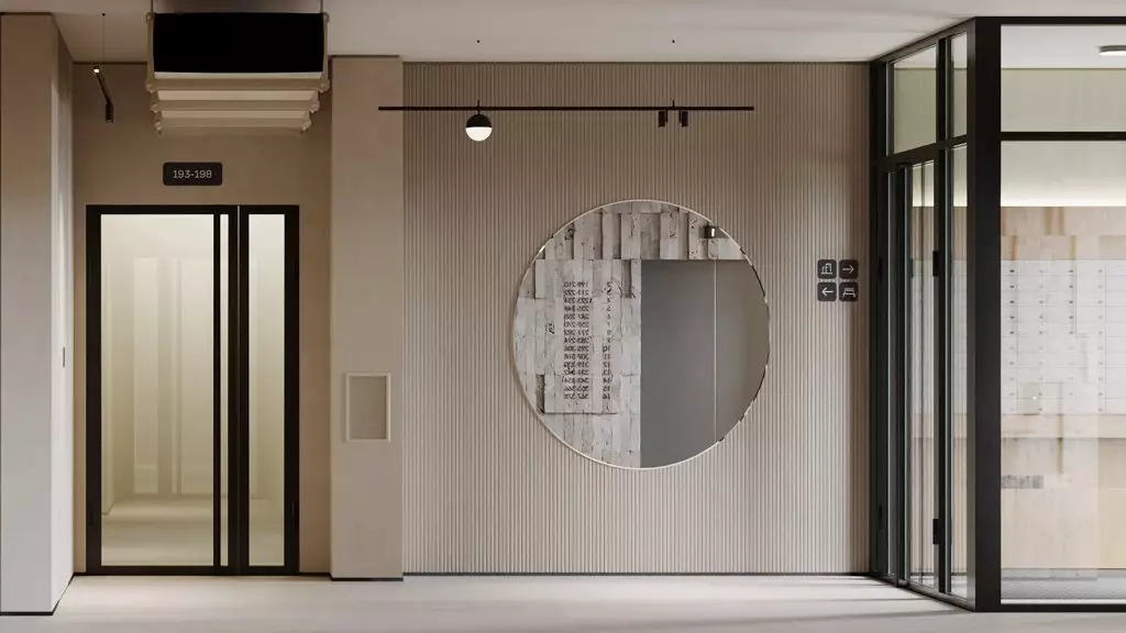 В общей стилистике выполнят также отделку интерьеров входных групп и мест общего пользования. Для холлов нежилых первых этажей предусмотрено панорамное остекление окон, поэтому подъезды будут наполнены светом и воздухом. Входы спроектированы на уровне земли, что сделает комфортным проживание маломобильных жителей, а также родителей с колясками. Для хранения колясок, самокатов и велосипедов предусмотрены специальные помещения, для размещения личных крупногабаритных вещей предложат кладовые боксы. Большая часть площадей первых этажей отведена под коммерческие заведения. Подземный паркинг проектом не предусмотрен.