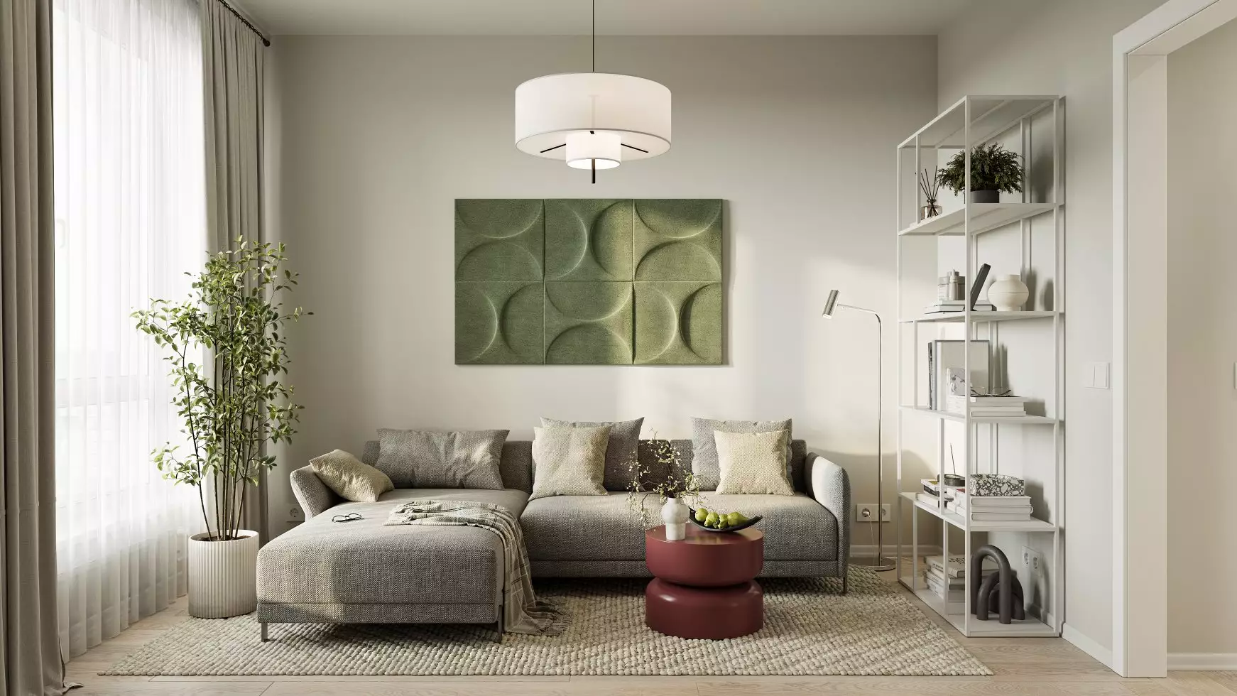 Покупателям жилья предлагаются студии, одно- и двухкомнатные варианты классических и европланировок площадью от 14 до 43 м² с потолками высотой от 2,72 м на типовом этаже до 3,32 м в квартирах на верхних уровнях. Соседние квартиры можно объединить. Балконы и лоджии проектом не предусмотрены. Есть варианты с гардеробными, а также с видом на лесопарк и рощу у дома. В квартирах будет светло благодаря увеличенным окнам: высота от пола до подоконника — 62 см. Кроме того, доступны квартиры с угловыми окнами. Застройщик передает готовое жилье с чистовой отделкой в светлых нейтральных тонах (натяжные потолки, обои под покраску, ламинат светлых тонов, в санузлах — керамическая плитка и керамогранит) либо без нее.