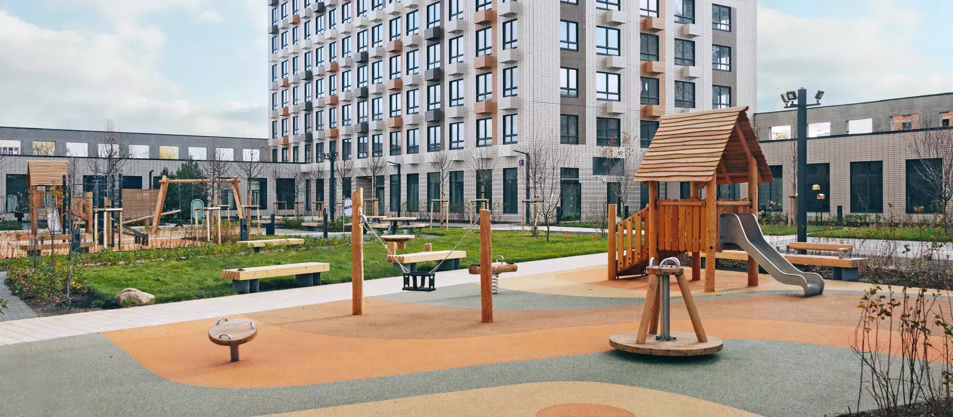 В закрытых дворах новостройки будут устроены зеленые дворы-парки без машин с детскими игровыми площадками, спортивными зонами с уличными тренажерами, местами для отдыха. Для неспешных прогулок через все кварталы Открытого парка проложат большой пешеходный бульвар. Новоселы смогут пользоваться собственной инфраструктурой. В рамках проекта откроются: