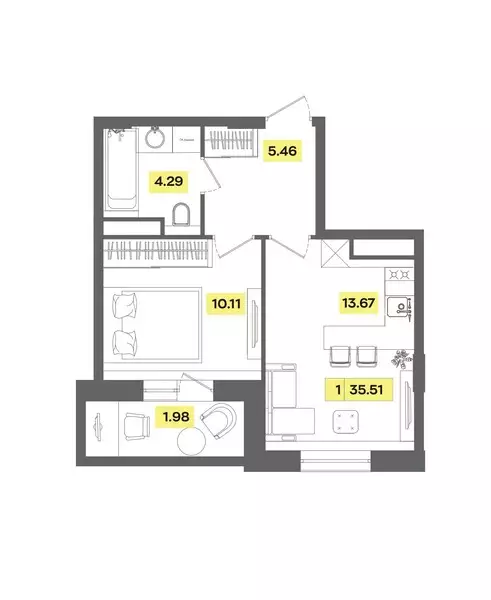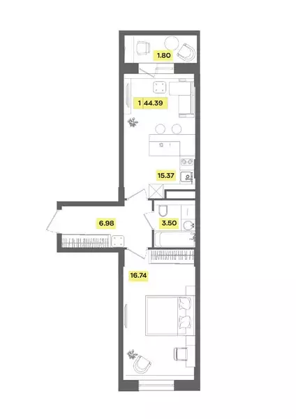 Планировки с числом комнат от одной до трех варьируются по площади от 38 до 61 м², высота потолков составляет 2,7 м. В каждом лоте предусмотрены лоджии, совмещенные санузлы, а в некоторых — гардеробные. На этаже располагается до пяти квартир. Для удобства покупателей доступны два варианта отделки: предчистовая white box или чистовая отделка "Комфорт" в светлых тонах.