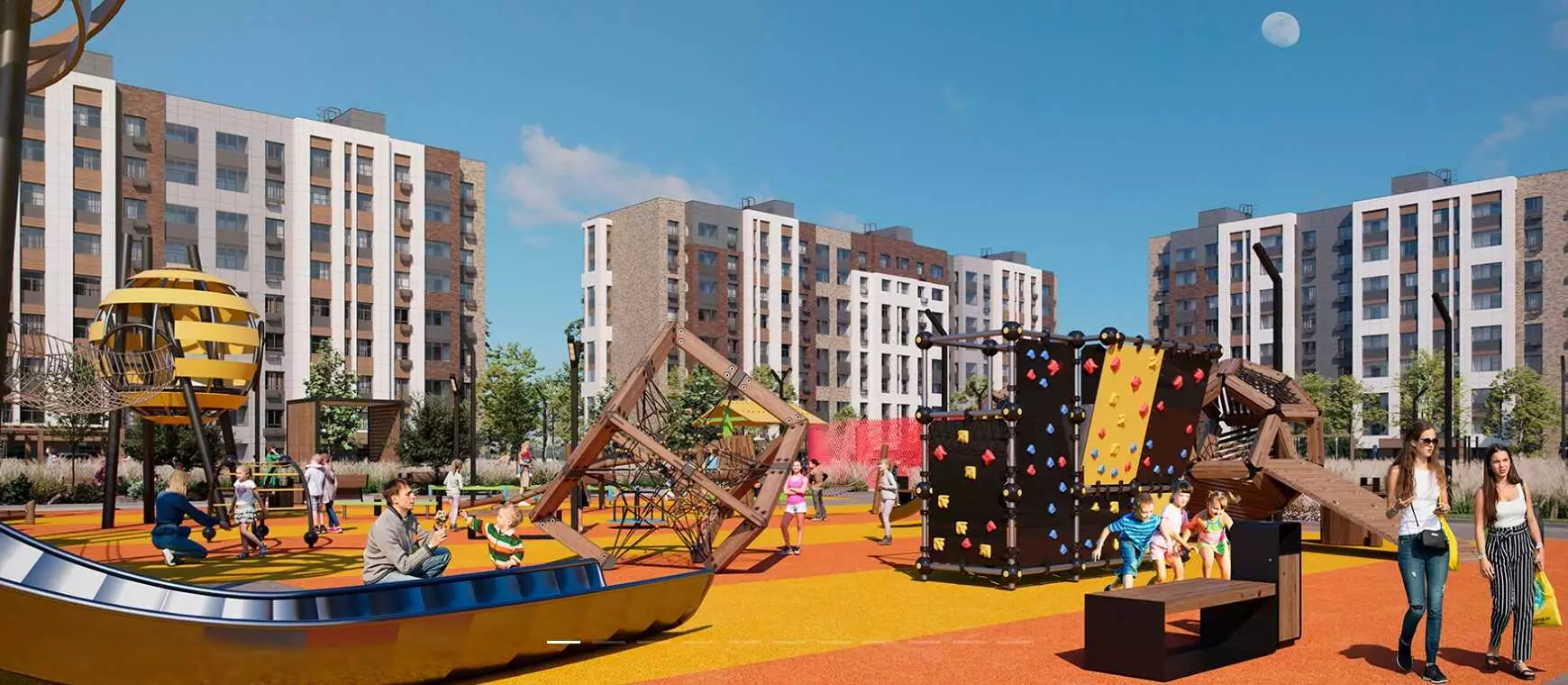 В жилом комплексе предусмотрена закрытая территория с комплексной системой охраны, что обеспечивает безопасность и спокойствие жителей. Для детей различных возрастов оборудованы современные и безопасные игровые площадки с амортизирующим покрытием. Малышей порадуют песочницы, горки, сказочные домики и уличные музыкальные инструменты, а также нейродинамичные развивающие зоны. Для детей постарше предусмотрены веревочный парк с лабиринтом, площадки для паркура, мини-футбола и волейбола, где они могут активно проводить время. На участке комплекса также расположены три естественных водоёма с песчаными пляжными зонами, оборудованными шезлонгами. Любители уединения или рыбалки оценят озеро с оборудованными пирсами, где можно насладиться отдыхом на природе. Застройщик сохранил на участке величественные сосны и вековые липы, высотой почти с дом, они придают территории уют и особую природную красоту. В состав встроенной инфраструктуры микрорайона войдут: