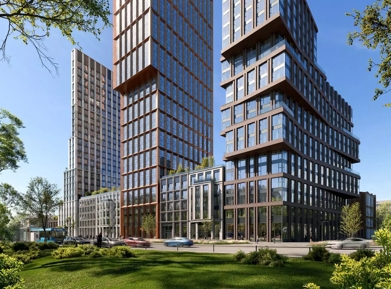 Рядом находятся березовая роща, Москва-Сити. Башни, входящие в жилой комплекс, явно не одинаковы по высоте, для любителей мегаполисов азиатского формата.