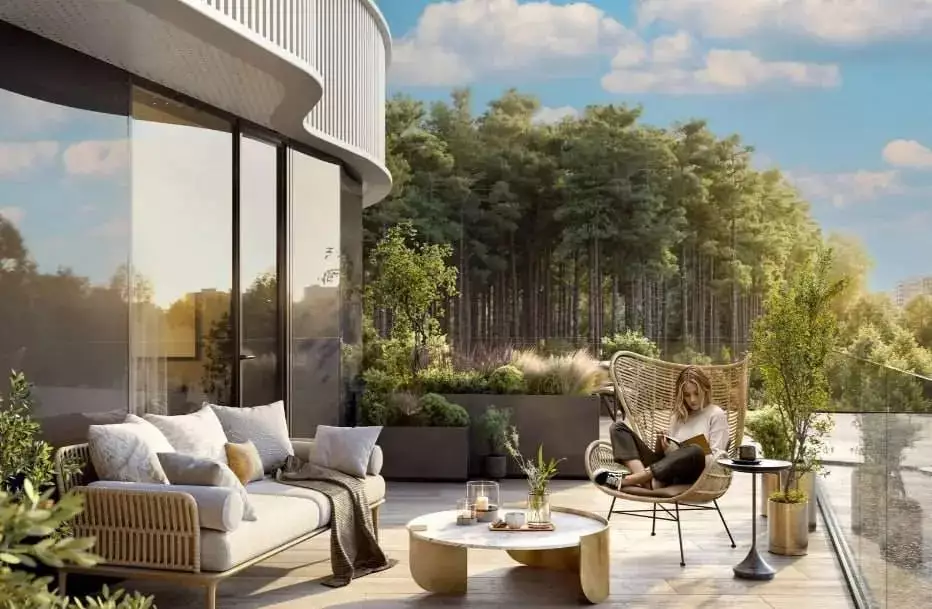 Покупателям предлагаются студии и квартиры с одной-пятью комнатами площадью от 23 до 120 м² с высотой потолков от 2,8 м. В семейных планировках предусмотрены гардеробные, постирочные и кладовые. Все лоты сдаются без отделки. Благодаря грамотному расположению домов, из большинства окон открывается вид на лесопарк.