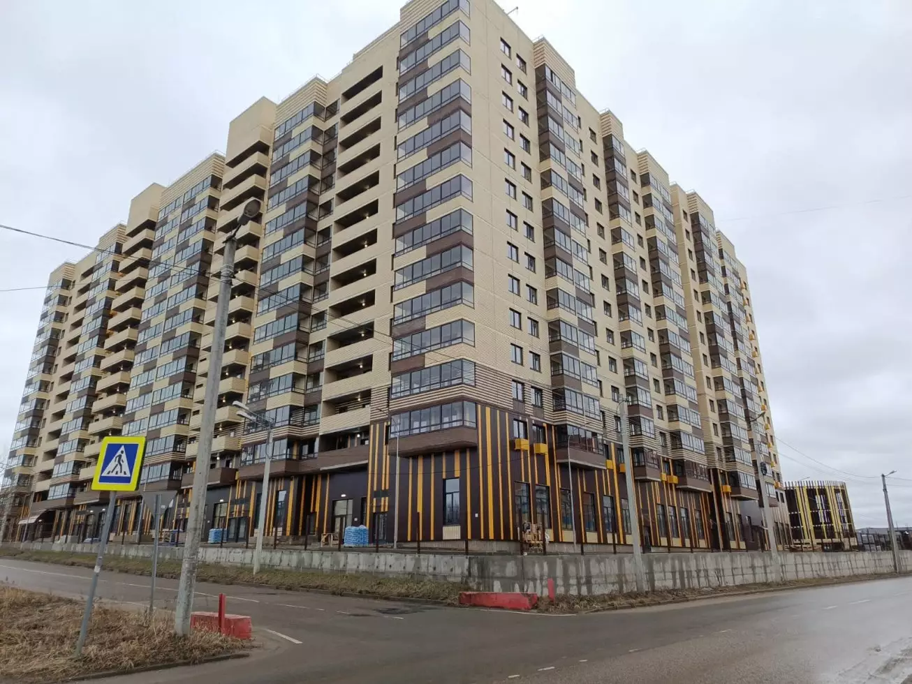 Архитектура жилого комплекса современная и лаконичная. Минималистичные фасады оформлены в бежевых и шоколадных тонах, которые гармонично сочетаются между собой. Желтые корзины для кондиционеров добавляют яркие акценты в экстерьере. Входы расположены на уровне тротуара. В каждом подъезде два выхода — во двор и на улицу. В холлах предусмотрены помещения для консьержа и хранения колясок. Проект учитывает потребности детей, пожилых и маломобильных жителей, для чего реализуются элементы безбарьерной среды. Подземный паркинг не предусмотрен.
