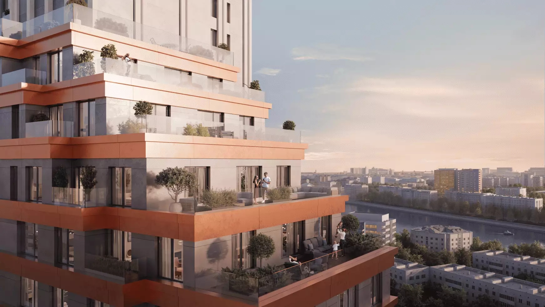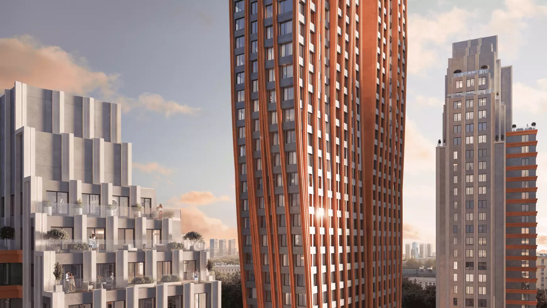 Здания строятся по монолитной технологии с панорамным остеклением. Навесные вентилируемые фасады обеспечат высокую шумо- и теплоизоляцию, а в отделке применят металлические панели разных оттенков. В корпусах усилят шумоизоляцию стен и пола. Инженерные системы соответствуют золотому стандарту ФСК. В квартирах установят центральное кондиционирование со скрытыми блоками, фильтрацию воздуха, очистку воды до уровня питьевой. Управление функциями "умного дома" и "умного здания" будет доступно через мобильное приложение. Безопасность обеспечит трехуровневая система. Помимо круглосуточного видеонаблюдения, предусмотрены контроль доступа через смартфон, бесконтактный вход и защита от проникновения посторонних в паркинг и на территорию. В лифтах установят считыватели, ограничивающие доступ на чужие этажи. Передвижение по зданию обеспечат бесшумные скоростные лифты с дизайнерским оформлением. В них, как и в паркинге, усилят сигнал мобильной связи.