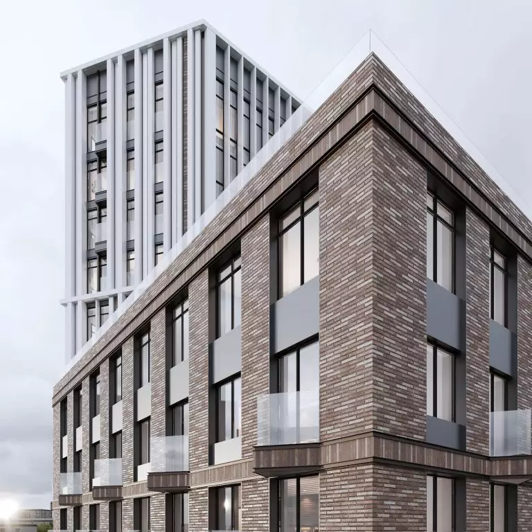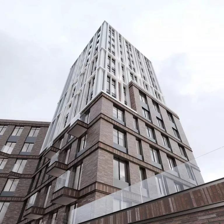 Корпуса возводят по монолитно-кирпичной технологии. Наружные стены будут облицованы бетонной плиткой с фактурой кирпича и композитными панелями. Здания оборудуют интеллектуальными инженерными системами — от автоматической пожарной сигнализации до системы круглосуточного видеонаблюдения на всей территории. Входные группы планируют оснастить видеодомофонами с возможностью удаленного управления через смартфон. Скоростные бесшумные лифты обеспечат комфортное перемещение между этажами и спуск в подземный паркинг.